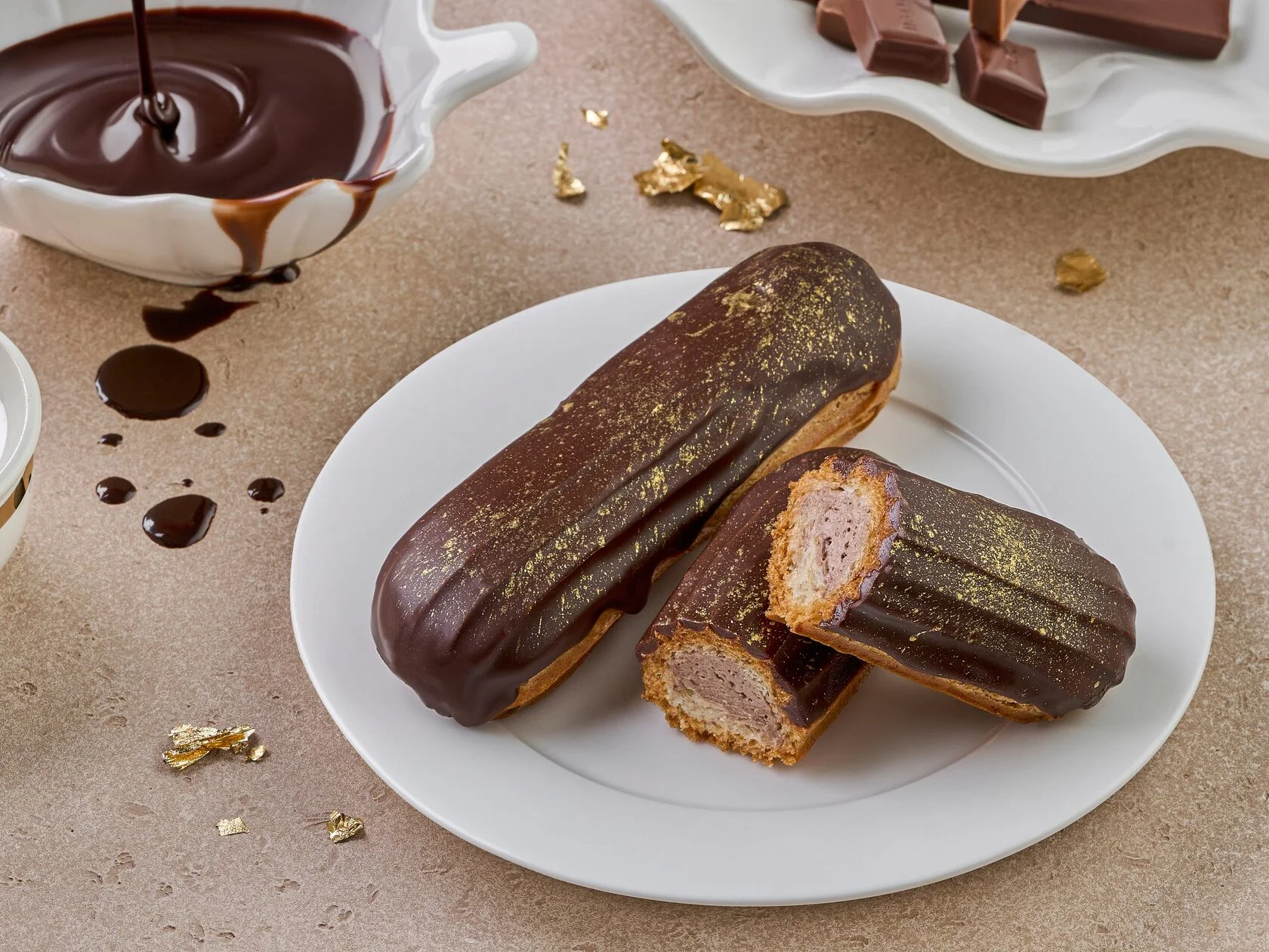 Пирожное из нежного заварного теста с шоколадным сливочно-сырным кремом, декорированное шоколадной глазурью.